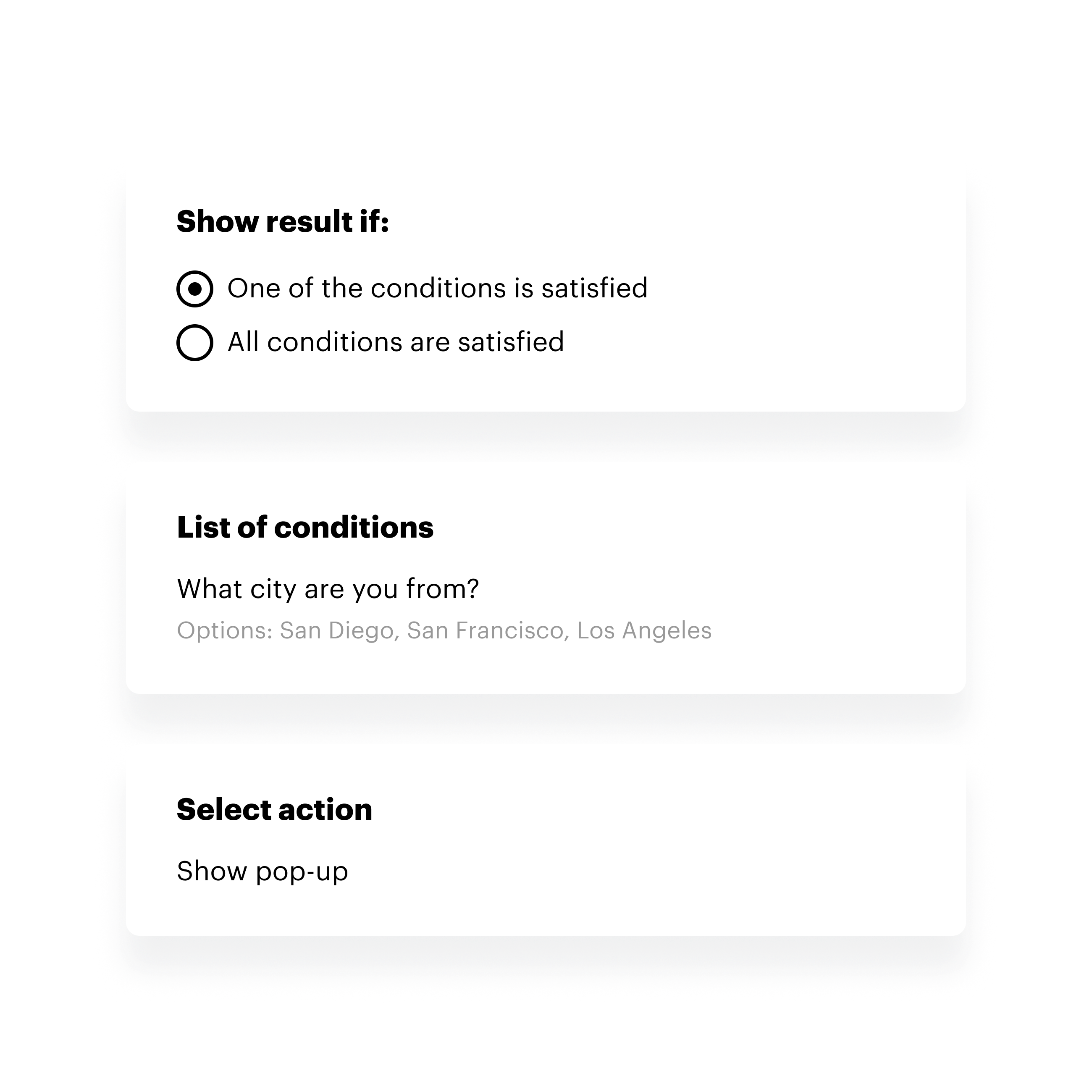 Personalisasi kuis untuk setiap pengunjung: ajukan pertanyaan berdasarkan jawaban yang diberikan. Pengunjung tidak perlu menjawab pertanyaan yang tidak relevan, dan Anda akan mendapatkan informasi yang lebih rinci.